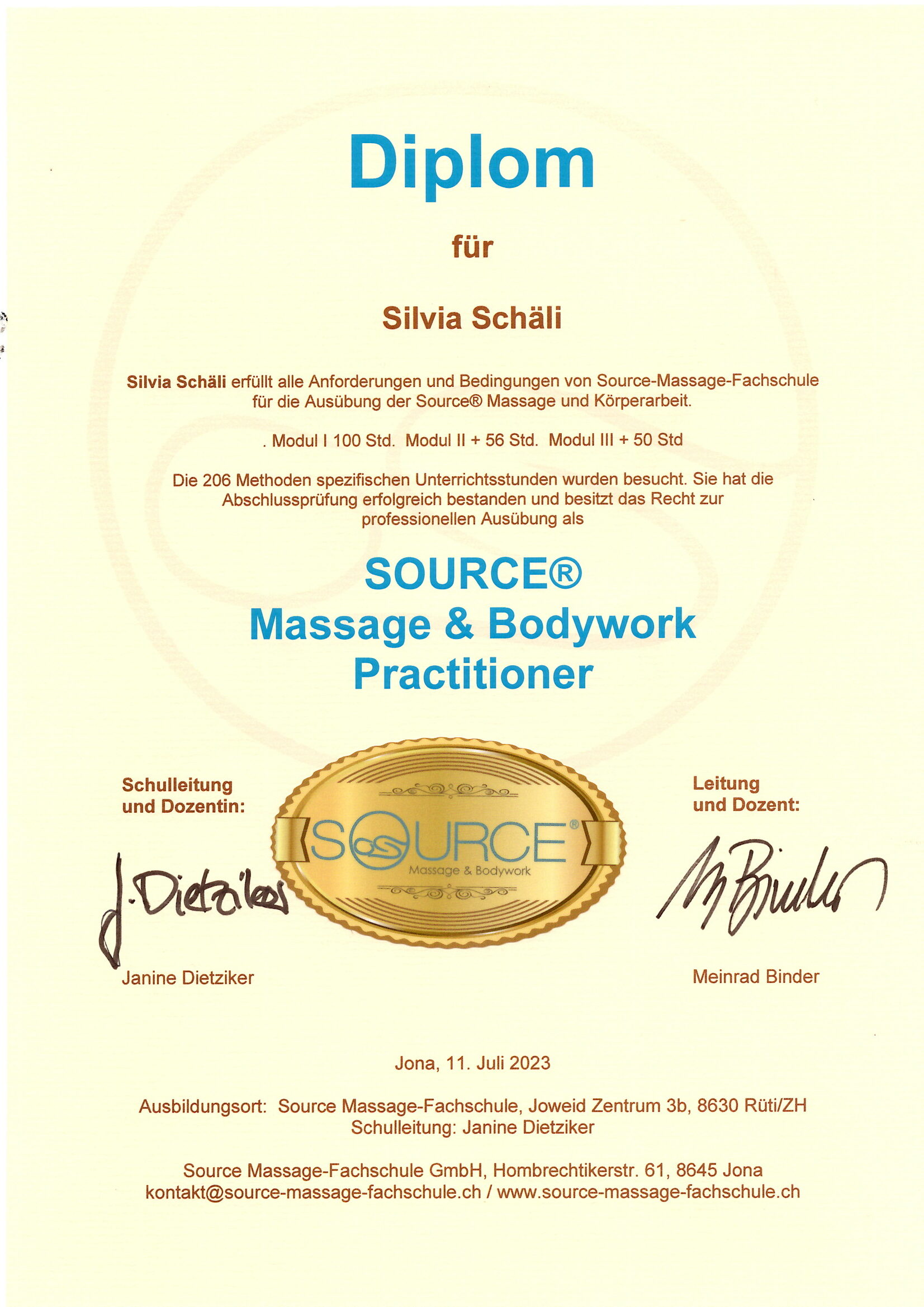 Diplom Wellness Source Massage