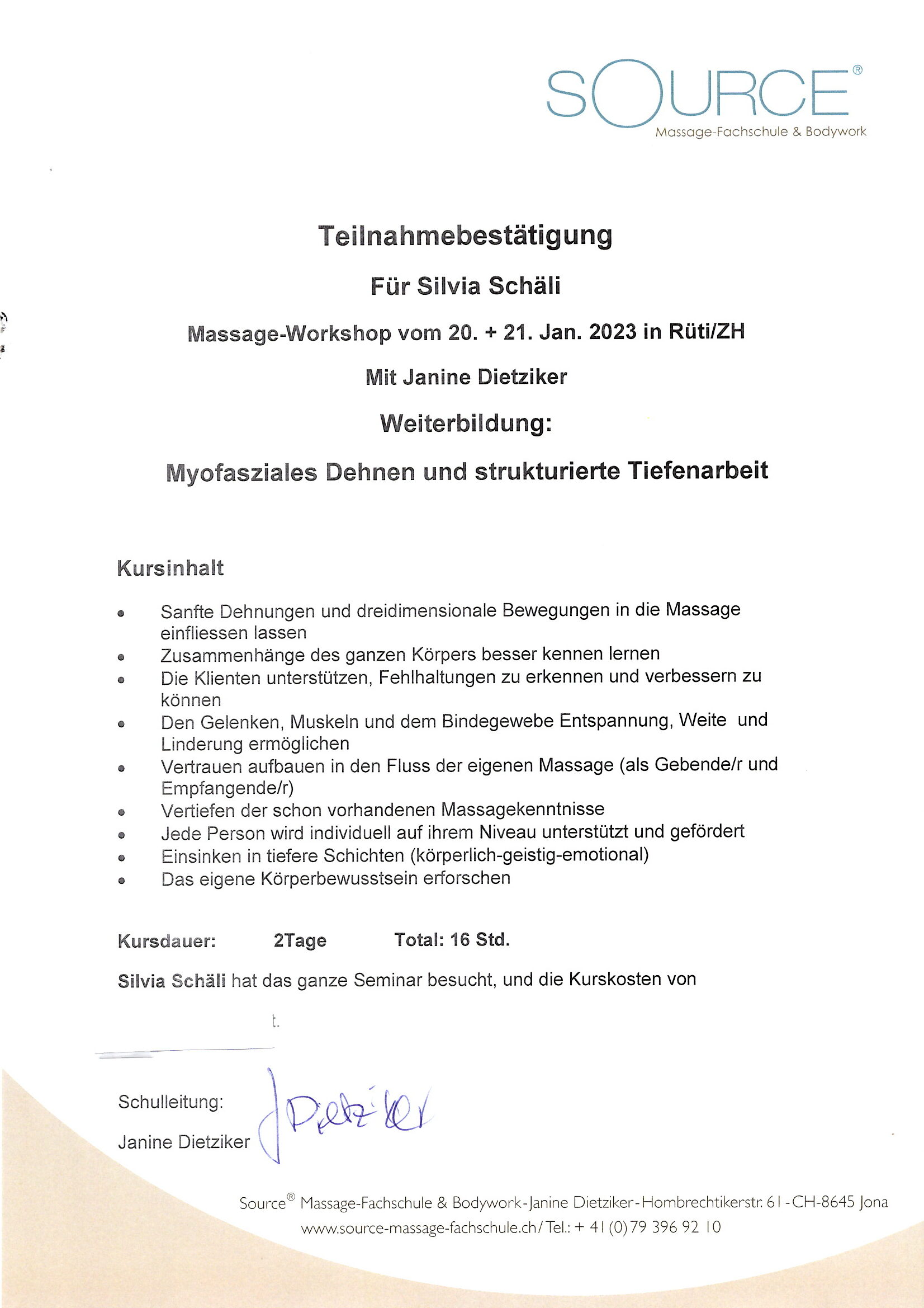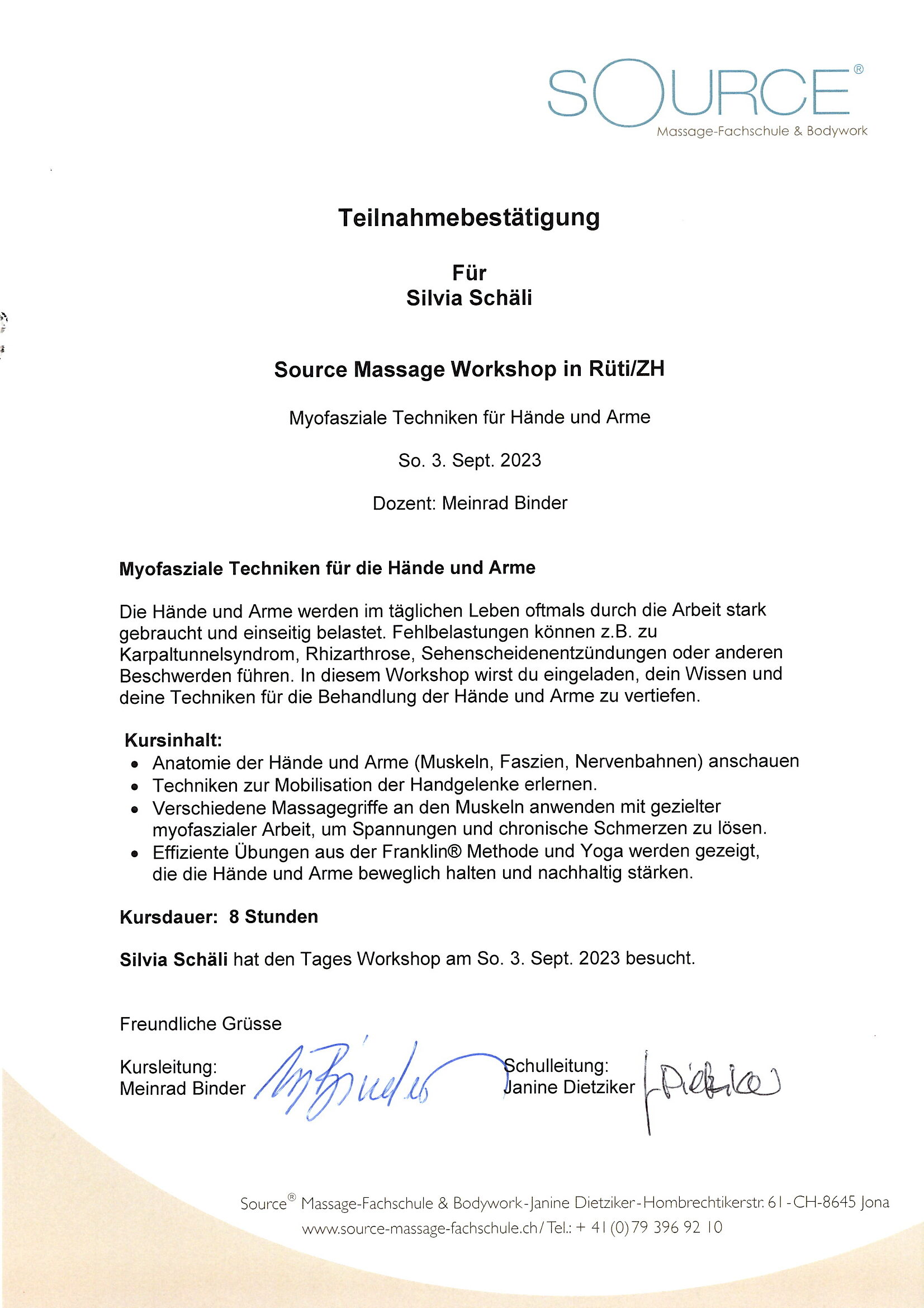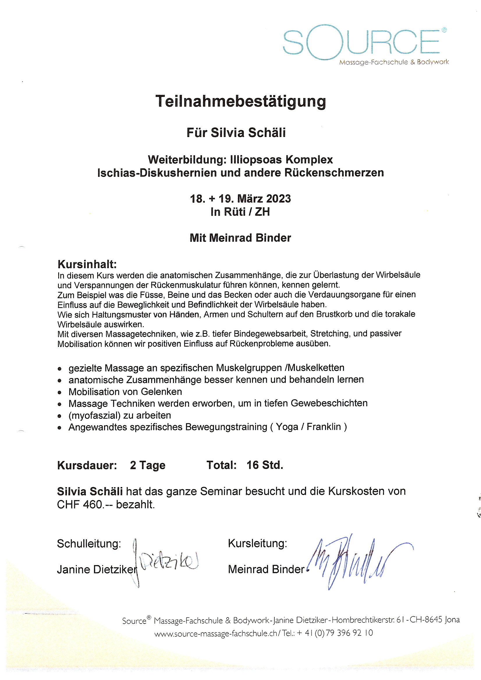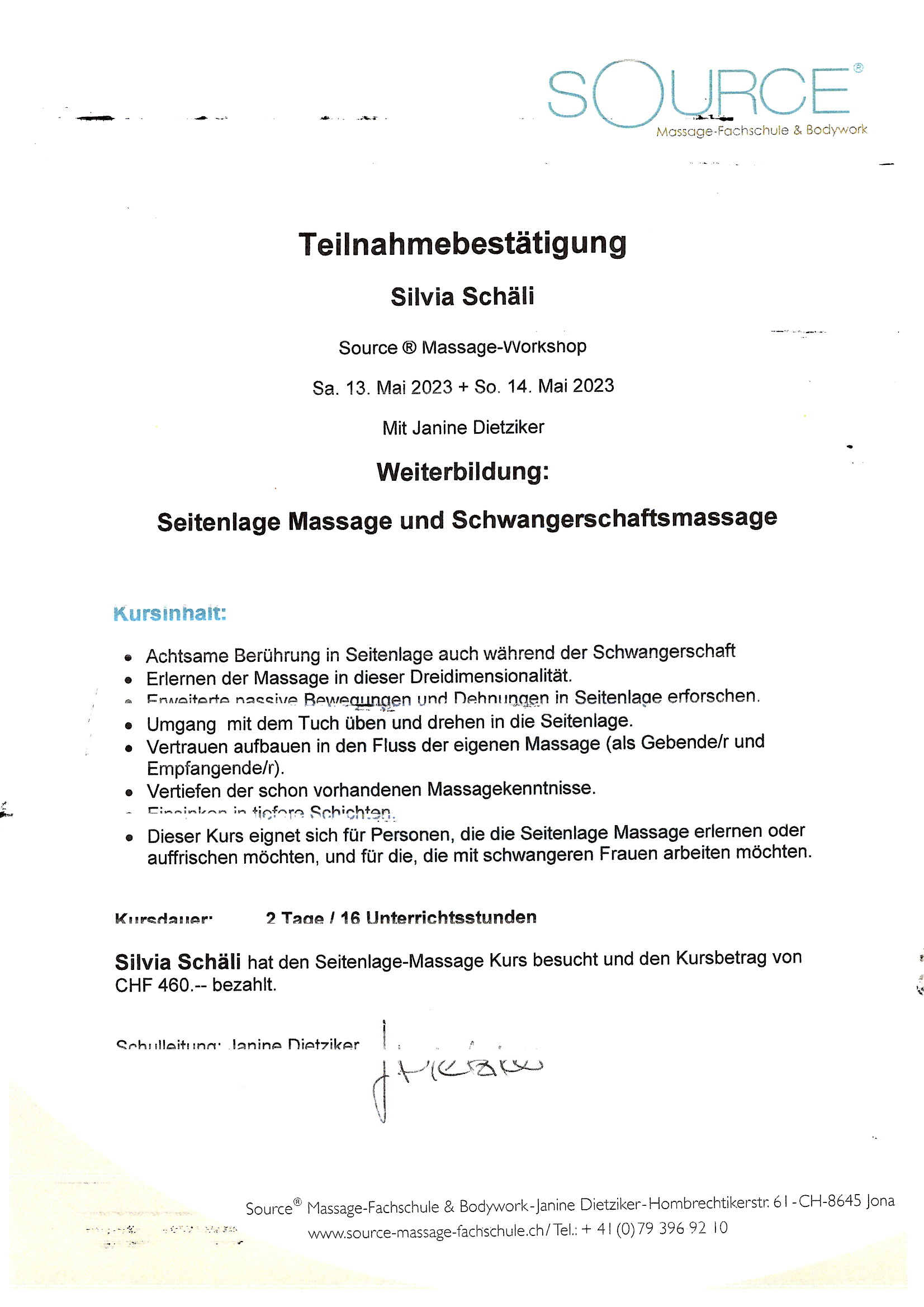 Lehrgangbestätigung Saurce 23